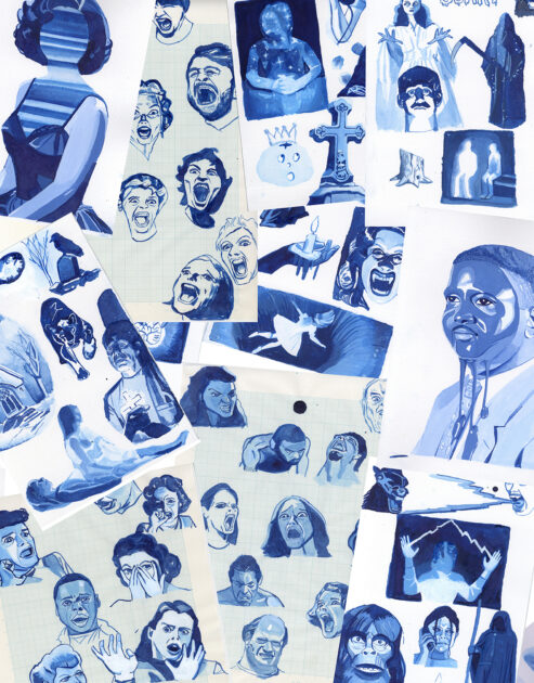 Rather than prioritizing a preconceived concept, I value the immediate sense of “whether it’s visually interesting,” allowing images to emerge organically from the act of drawing itself. I am drawn to the serendipity found in the layering, bleeding, and flow of paint, as well as the ambiguity inherent in human expressions, and I continue to create with this focus.